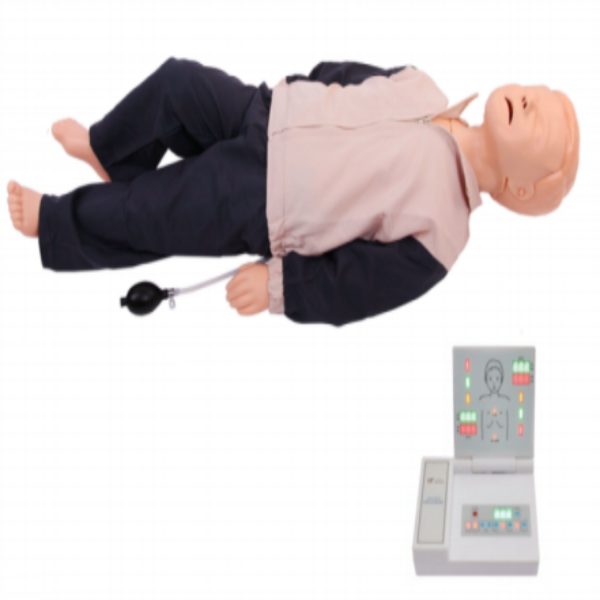 该产品根据五岁儿童的解剖特征和生理特点设计,其核心模块包括模拟人和电子显示屏,可进行儿童心肺复苏训练,实现电子监测人工呼吸时吹气量和手指位按压时按压深度。适用于社会心肺复苏培训机构、医院、医学院、卫校